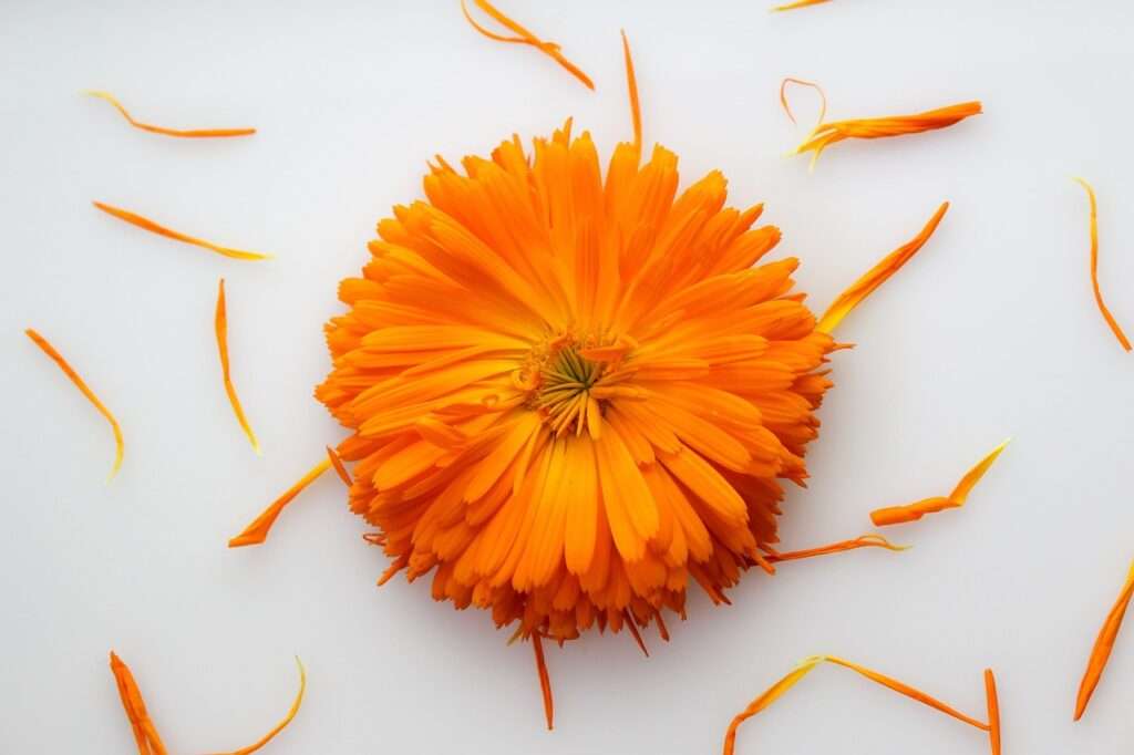 Měsíček lékařský (Calendula officinalis) – bohatý na triterpenové estery, karotenoidy a flavonoidy. Má výrazné hojivé, protizánětlivé a epitelizační účinky, podporuje regeneraci pokožky a zklidňuje podráždění.