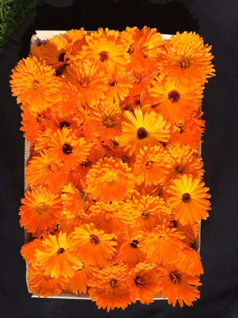 Měsíček je však typický především obsahem lipofilních účinných látek, jako jsou triterpenové alkoholy a estery (např. faradiol a jeho estery), karotenoidy a další složky rozpustné v tucích, které jsou zodpovědné za jeho výrazné hojivé, protizánětlivé a regenerační účinky. Tyto látky se uvolňují nejlépe při mírném zahřívání, proto po krátké alkoholové fázi zaliji měsíček bio kokosovým olejem a následuje macerace za tepla.